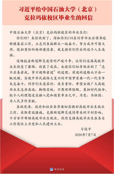 7/span>月18/span>日下午,学院团委在钉钉线上组织了 “/span>习总书记回信寄语广大高校毕业生”/span>学习交流会,学院团委书记张明飞老师、各学生组织负责人、各班团支书和首期普惠精英班(青峰班)全体学员参与。/p> 2020/span>年7/span>月7/span>日,习总书记给中国石油大学(北京)克拉玛依校区毕业生回信,肯定他们到边疆基层工作的选择,对广大高校毕业生提出殷切期望。习总书记在回信中还指出,这场抗击新冠肺炎疫情的严峻斗争,让这届高校毕业生经受了磨练、收获了成长。前进的道路从不会一帆风顺,实现中华民族伟大复兴的中国梦需要一代一代青年矢志奋斗。/p> 在集中学习完回信精神后,张明飞老师分享了我校优秀志愿者何林秀毕业后扎根西藏、服务西藏的感人事迹,并对学院同学承担社会责任、参与祖国建设提出了要求和期许,还重申了习总书记在五四百年的时候对新时代青年的六点要求:新时代中国青年要树立远大理想、新时代中国青年要热爱伟大祖国、新时代中国青年要担负时代责任、新时代中国青年要勇于砥砺奋斗、新时代中国青年要练就过硬本领和新时代中国青年要锤炼品德修为。/p> /p> /p> 学院团委副书记黄格选同学在学习后发表了自己的感受,他表示总书记的回信支持和鼓舞了大学生的援疆基层工作,也让我们更加明确了肩上的责任和担当。2020/span>年中国经受了新冠疫情的打击,但这一年也是决胜全面建成小康社会、决战脱贫攻坚的收官之年。在这一年,总书记呼吁广大高校生深入基层工作,勉励大学生与基层群众一起奋斗。大学生不应只“/span>读圣贤书”/span>,更应该担当社会责任。基层工作是我们为社会贡献的重要实现形式,深入群众,切实实践,才能将所学化为所用,丰富学识,提升自己,志存高远,不负期望。/p> /span>/p> 另外,团支书代表叶芳灵同学也积极地发表了自己的学习感悟:如习总书记所言,我们应当把个人的理想与追求融入到党和国家的事业中去。作为青年人要不畏艰难险阻,勇担时代使命,有人奋战在脱贫攻坚第一线,深入到基层去,铭记初心,像百年前的先辈一样不畏艰苦,在基层、在最艰苦的地方做好最扎实的工作。有人尽管留在中国发达的东部沿海地区,但仍积极促进东部与中西部地区的合作。像我们作为学习小微、普惠金融的学生,同样也需要深入到基层中去,帮助中国的实体经济更好的发展。目前的我们,在抓紧学习之余要多参加志愿活动,在能力微薄的现在也为学校与社会奉献出自己的一份力量。/p> /span>/p> /span>/p> 通过此次的学习,同学们收获满满。许多同学都忍不住发表了自己的观点和感受,让我们一起来看看吧。/p> /span>/p> 从习总书记的回信中我感受最大的是一个词——责任。作为大学生,我们不应做被困于“象牙塔”内、“两耳不闻窗外事,一心只读圣贤书”的书呆子。大学生作为半只脚踏入社会的社会人,不应只局限自己的小世界里;社会是一个庞大的系统,而每一个人都是这个社会系统里运作的齿轮,只有将自己代入社会,投身社会,才能显示自己的价值。而大学生作为新时代的先行者,不仅要掌握知识,拥有完善的人格,更要有对环境对社会的责任感,古有“先天下之忧而忧,后天下之乐而乐”,今有“横眉冷对千夫指,/span>俯首甘为孺子牛”/span>。社会责任担当,大学生义不容辞!/p> ——学院学生会执行主席周少博/p> /span>/p> 克拉玛依校区的学子们扎根基层、服务基层的精神十分令人感动,总书记的回信也使人深受感触。他不仅肯定了大学生边疆基层工作的选择,勉励大学生立志同各族群众一起奋斗,同时也对广大高校毕业生提出殷切期望。此次新冠疫情使高校毕业生面临巨大的考验,正如习总书记所说,前进的道路都不会是一帆风顺的,但青年作为祖国的未来、民族的希望,必须不畏艰难险阻,为实现中华民族的伟大复兴而矢志奋斗。作为当代大学生,我们将谨记习总书记的寄语,志存高远,不负期望,勇担时代使命。我们也必将小我融入大我,将个人理想融入党和国家的事业中,为党,为国家,为人民多做贡献。/p> ——学院青年志愿者服务队队长伍晨晨/p> /span>/p> 读完习总书记对大学生饱含肯定与殷切希望的回信,我深受触动。这118/span>名同学的选择给我们广大学子作出了表率,身体力行的阐述了“/span>从群众中来,到群众中去”/span>的真正涵义。我们要不仅学习他们不畏艰险、勇担使命的精神和勇气,更要把所学的知识和本领投入中国梦的生动实践之中。对于我们大学生,我们要积极投身到社会实践中去,能使我们学有所用,在实践中成才,在服务中成长,实现大学生的自身价值。我们只有到实践中去、到基层中去,把个人的命运同社会、同国家的命运联系起来,才是青年成长成才的正确之路。/p> ——普惠精英班(青峰班)学员代表于零越/p> /span>/p> 看到习总书记给中国石油大学克拉玛依校区毕业生的回信,我第一想法是他为什么会提倡进入基层?因为他深知进入基层工作给他带来了些什么,习总书记是最后一批下乡的知青,他七年的知青岁月让他懂了什么叫做实际,什么叫做群众、民生,这是让人终生受益的东西。而我们这个时代的青年,从小生活条件都好,大多没有经历过艰难的环境,要深入了解民生,将来更好得为人民谋幸福,担责任,就要走进基层,不畏艰难险阻,为祖国和社会贡献一份微薄之力。/p> ——普惠精英