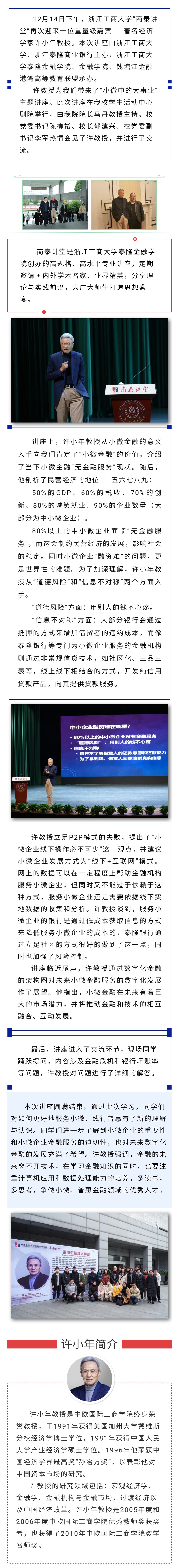 著名经济学家许小年教授做客博彩网站 “商泰讲堂”解读“小微中的大事业”