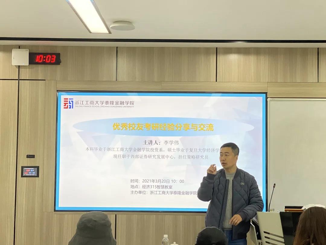 世上无难事,只要肯登攀。如今,越来越多的同学考虑考研深造。为了帮助大家更深入地了解考研信息、更好地进行学业规划,博彩网站特邀优秀校友李学伟于3月20日上午在经济楼315教室进行考研经验分享与交流讲座。