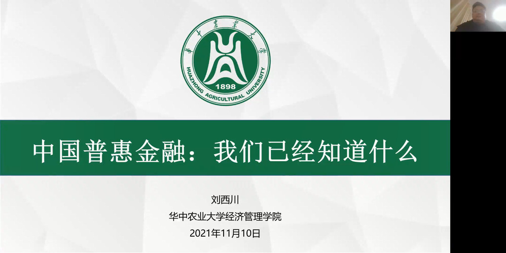 2021年11月10日,华中农业大学经济管理学院博士生导师、中国合作经济管理学会理事、国家自然科学基金项目通讯评议人刘西川教授应邀出席博彩网站 举办的商泰普惠金融论坛,为师生作了一场题为“中国普惠金融:我们已经知道什么”的线上专题讲座。讲座由博彩网站 院长马丹教授主持,博彩网站 、博彩网站 和其他院校的老师及学生参加了讲座。