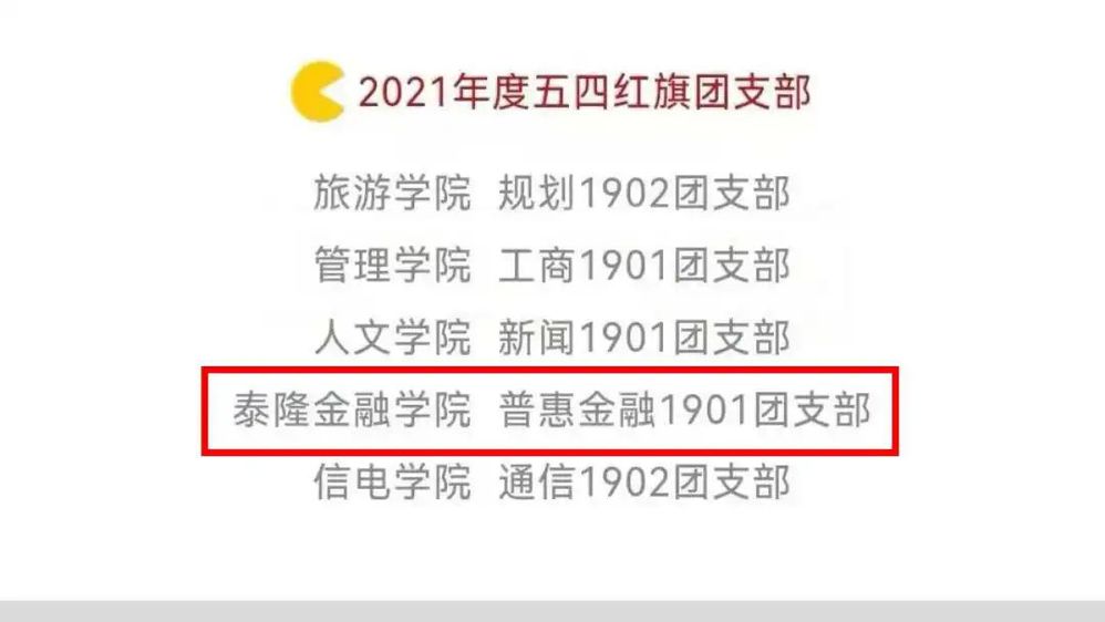 祝贺普惠金融1901团支部获评校“2021年度五四红旗团支部”
