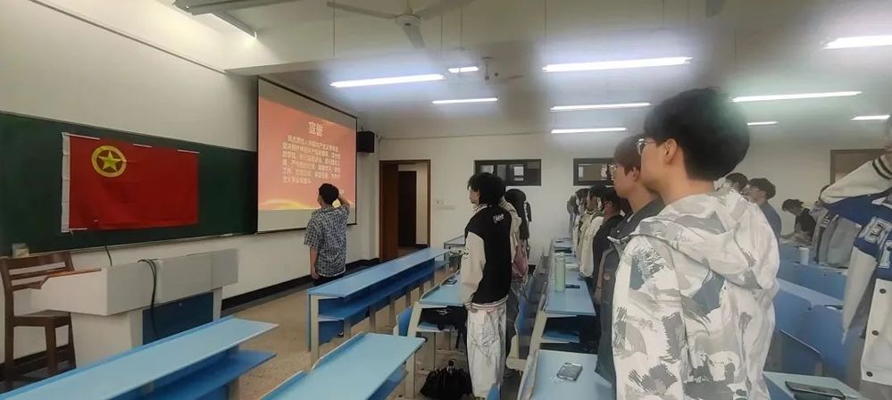 “我志愿加入中国共产主义青年团,坚决拥护中国共产党的领导……”博彩网站 团委、学生会全体成员在团委葛哲煜同学的带领下,面向团旗进行了庄严宣誓。