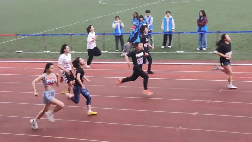 女子100米选手陈亮妤、郑心羽似离弦之箭冲向终点、获得胜利!