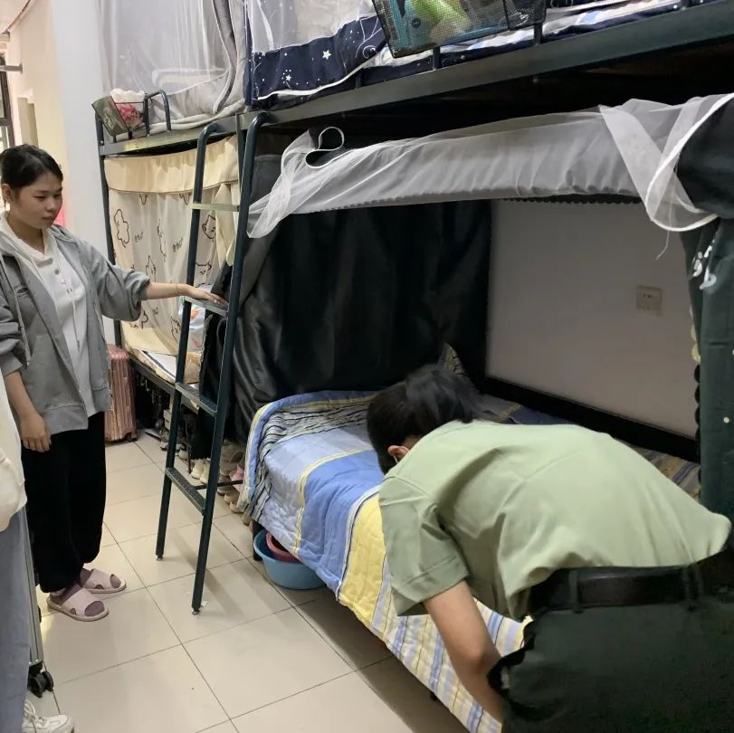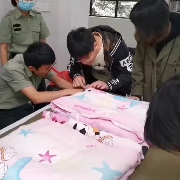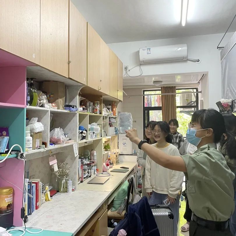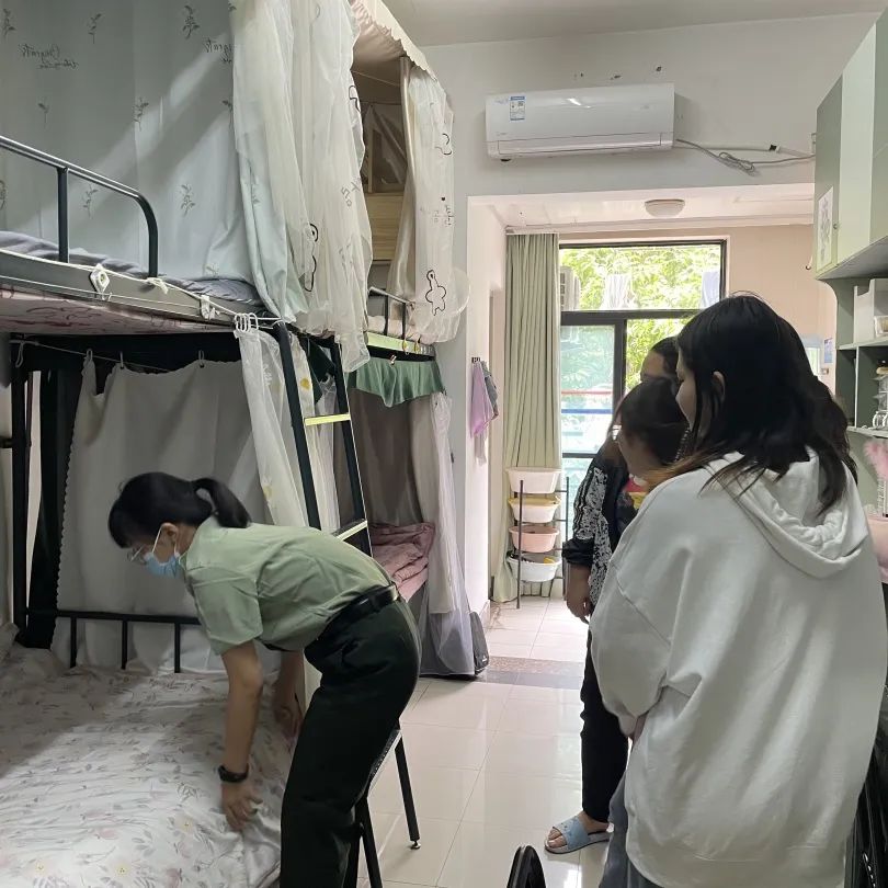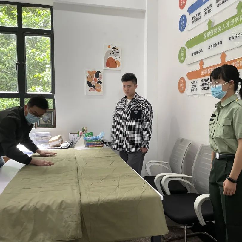 辅导员及教官对于各个寝室的内务整理提出了相关建议,教官对各个被子叠成的“豆腐块”进行了指导、传授诀窍。