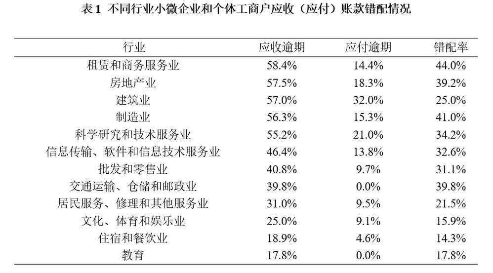 调查发现,小微企业在资金链方面面临着三大困境:(1)小微企业的应收账款与应付账款存在错配,表现为有应收账款的小微企业比例远高于有应付账款的小微企业比例,且面临应收账款逾期的小微企业比例远高于应付账款逾期的小微企业比例;(2)小微企业应收账款逾期时间较长,超三成小微企业的逾期时间在1年以上;(3)小微企业的应收账款逾期问题在经济下行时可能引发系统性风险。