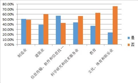 图2 小微企业分行业研发创新情况(是否有研发创新活动,单位:%)