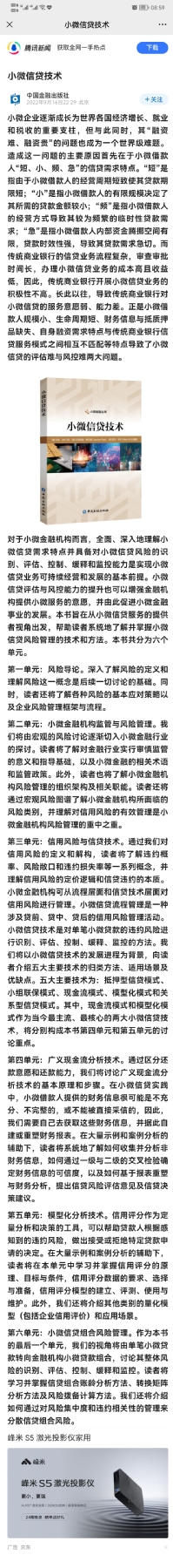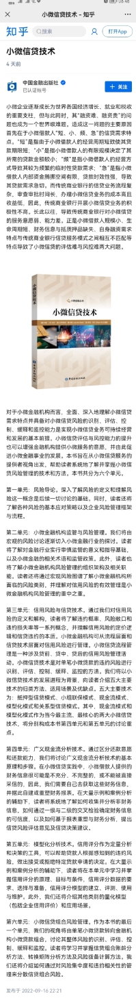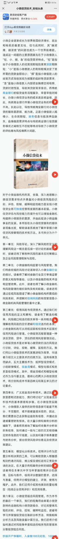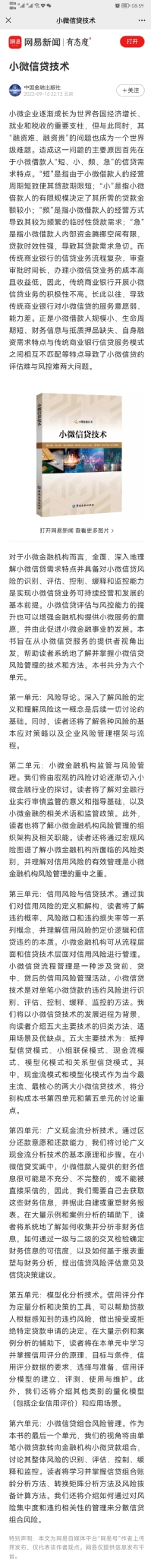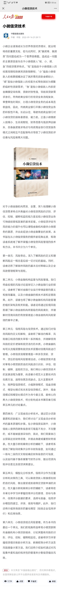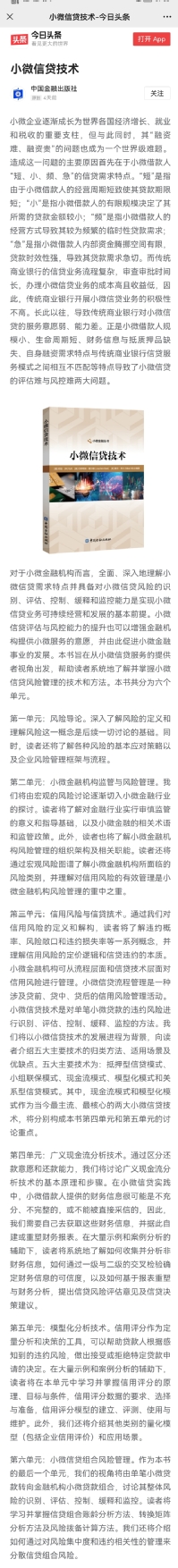 小微信贷丛书《小微信贷技术》受到关注