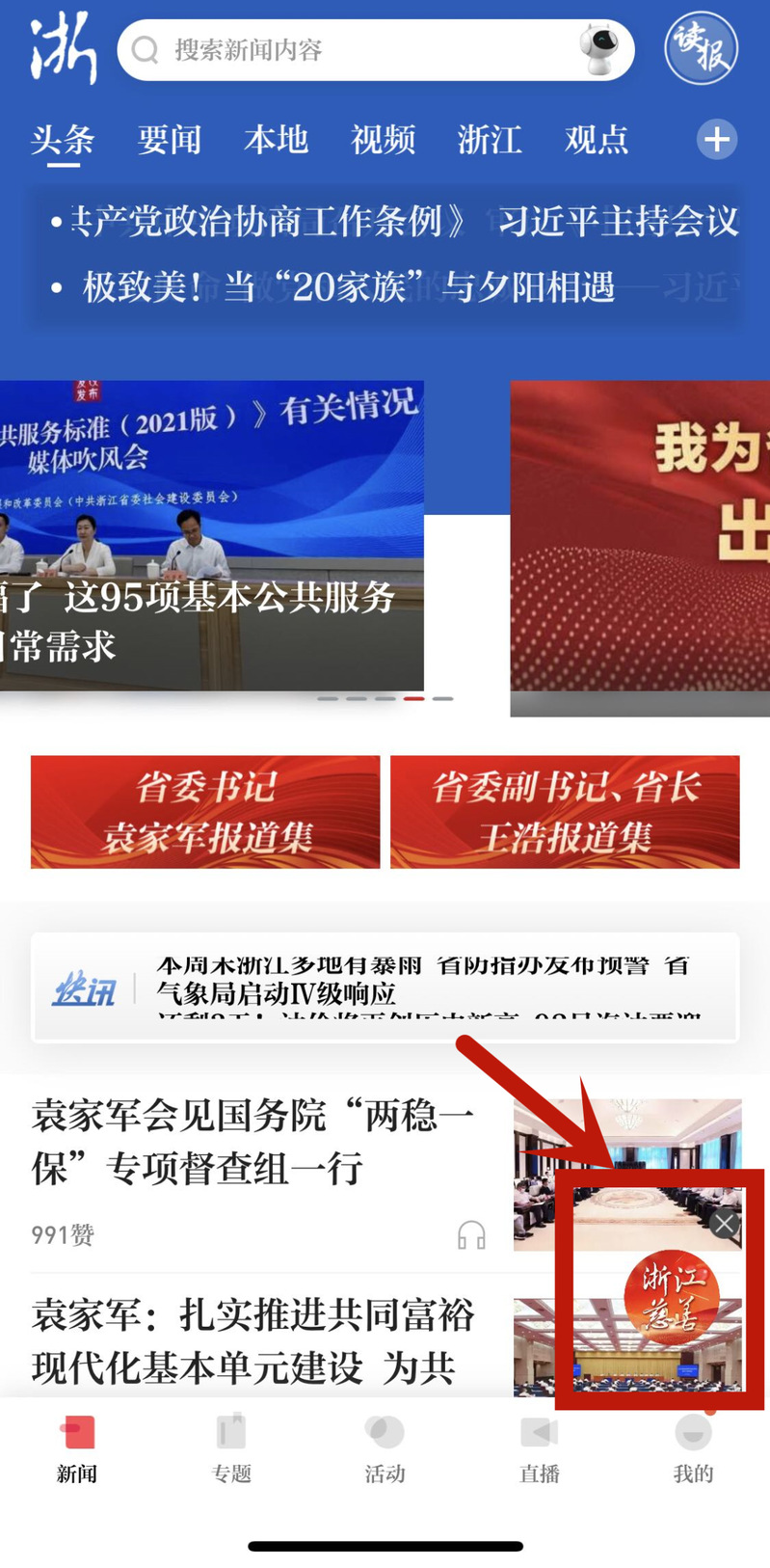 第二步:在【浙江新闻】APP找到投票通道或搜索“浙江慈善”