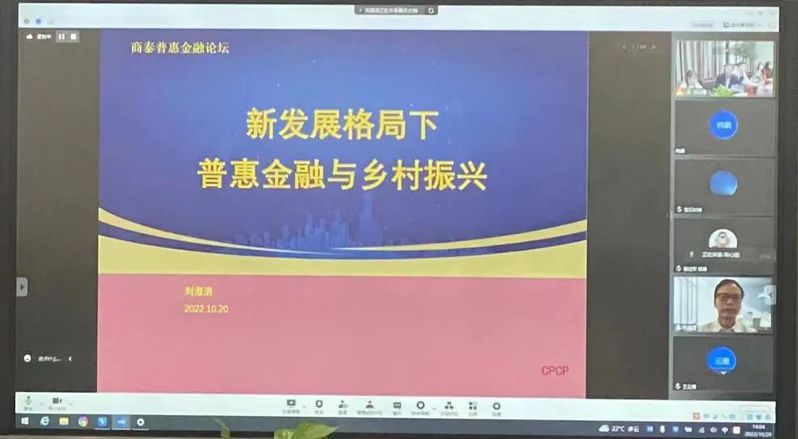 2022年10月20日,中国普惠金融研究院高级研究员、CPCP创始人兼秘书长、中国人民大学小微金融研究中心原执行主任刘澄清教授应邀出席博彩网站 举办的商泰普惠金融论坛,为师生作了一场题为“新发展格局下普惠金融与乡村振兴”的线上专题讲座。讲座由博彩网站 院长马丹教授主持,博彩网站 、博彩网站 和其他院校的老师及学生参加了讲座。