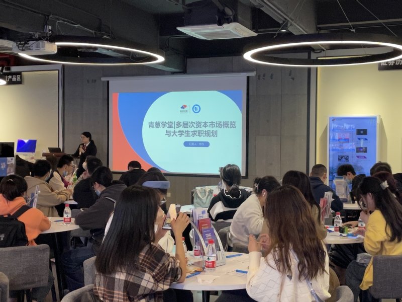 投资顾问方丹的讲座可谓干货满满。她讲述了资本市场的功能,通过对比中美之间多层次资本市场的差异,分析了我国金融行业就业前景。基于此,她介绍了金融行业职业规划。