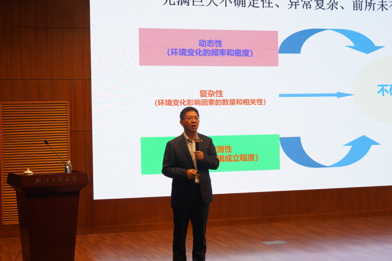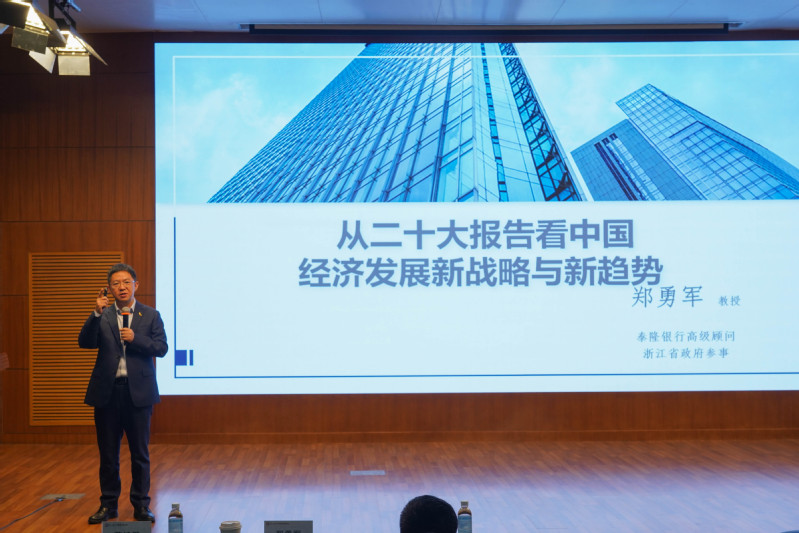 11月16日下午,泰隆银行首席经济学家郑勇军教授应邀出席博彩网站 在综合楼二楼报告厅举办的商泰首席金融论坛,为师生作了一场题为“从二十大报告看中国经济发展新战略与新趋势”的专题讲座。讲座由博彩网站 院长马丹教授主持。博彩网站 以及其他校内外的老师、同学参加了讲座。
