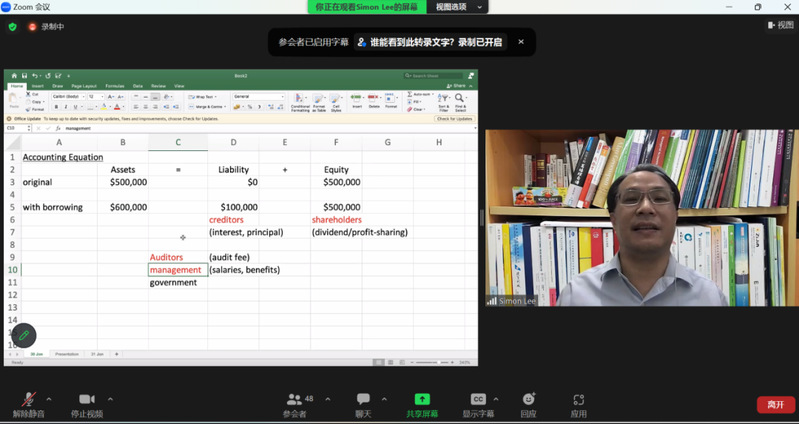 在接下来的几天集中学习中,Simon Lee给大家讲授了公司财务与财务管理、财务管理的决定和目标、委托-代理问题、会计等式的计算和运用、货币的时间价值、投资决策(债券、股票、投资现金流)、金融市场、财务分析等等重点知识。学习过程中通过海底捞、中国联通、HSBC、MTR、CLP等等大型知名企业的年度财务报告及其筹资业务等案例,对于财务管理和国际金融市场进行拓展和分析。同时也在讲课过程中引用多种会计等式以及excel计算制作报表等,教授大家如何计算净利润、单利&复利、复利终值&复利现值、年金、债券市场利率、股票价值、净现值(NPV)、内含报酬率(IRR)等等。
