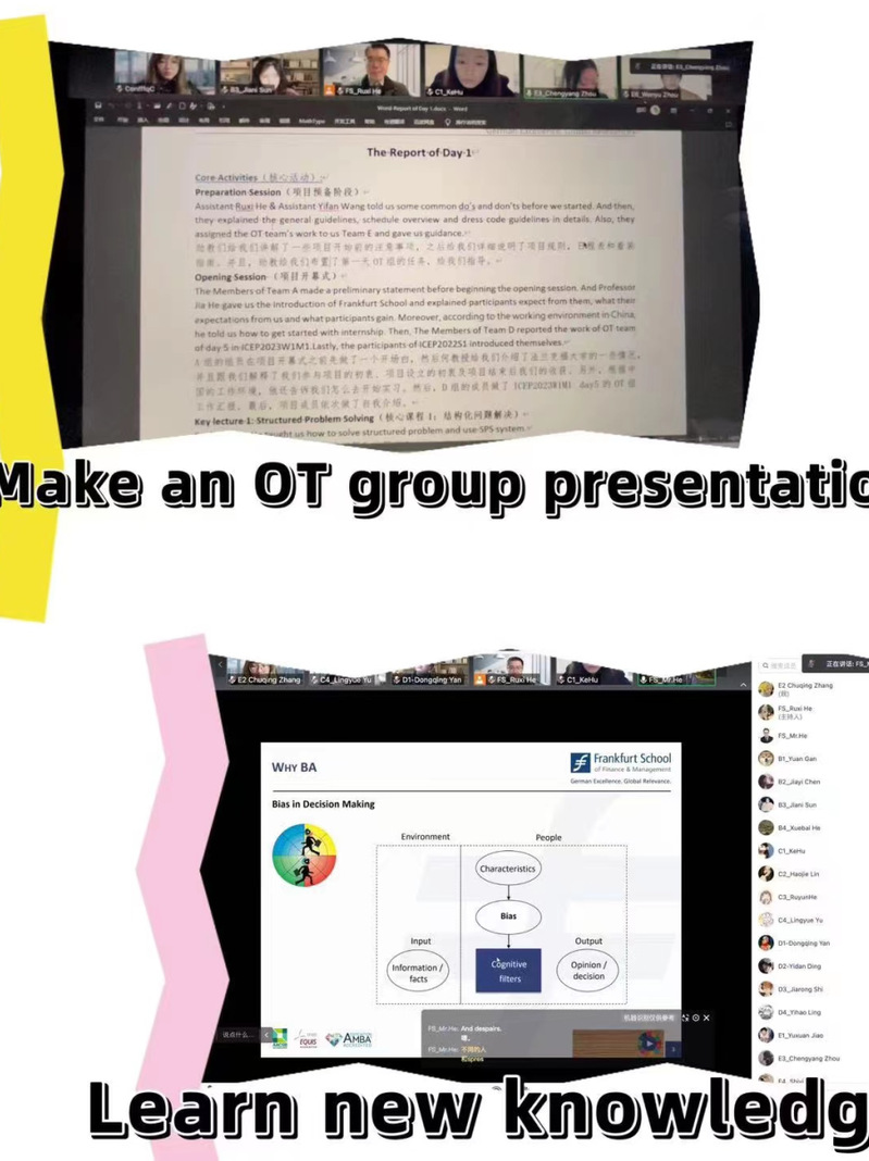 为期两周的ICEP课程对于我来说是一种全新的体验,包括全英的上课环境,时长较长的上课时间,在一开始需要花费一些时间去适应。同时,我们被分配成立不同的小组,在规定的时间内上交assignment,我觉得我的团队合作精神也得到了极大的锻炼。在学术上,我们接触到了ute教授和niranjan教授,两位不同的授课风格也是我们感受到了来自外国的不同的文化氛围。也很感谢何佳教授,不仅关注着我们的项目进程,也在各个方面提出严格的要求,让我们认识到了高要求高标准下的职场氛围。总而言之,感谢ICEP项目,感谢博彩网站 提供给我们的这次机会,使我们能成为更好的自己。
