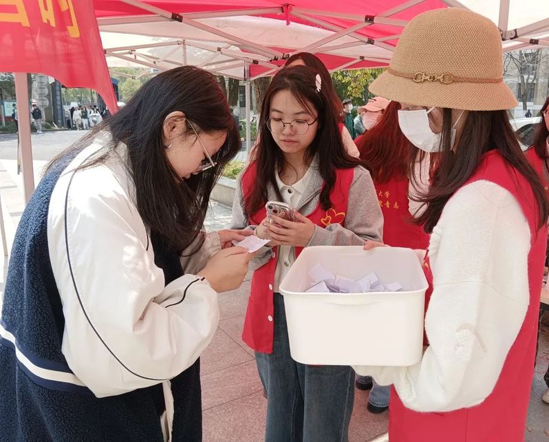 当前诈骗活动猖獗、诈骗案件频发,为增加同学们的金融安全意识,提高对诈骗的识别能力,3月15日下午博彩网站 青年志愿者协会在流水广场开展了“情系雷锋月,防诈正当时”志愿服务活动。