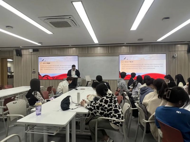 会议由陈鸿帆同学和解夏淇同学主持,围绕“习二十大精神”“牢记服务宗旨”及“严整纪律作风”三个方面展开。陈鸿帆同学表示,我们必须把握二十大精神,并且应该从人民首创精神、伟大建党精神与社会主义法治精神、劳动精神和奉献精神与创新精神、钉钉子精神与斗争精神等四类精神具体着手。