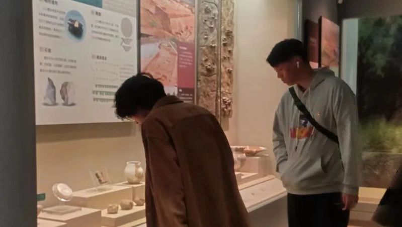 首先参观的是文明曙光——史前时期的浙江。在这里,同学们了解到浙江境内的人类活动可以追溯到100万年前的旧石器时代,并且从距今一万年左右的时候起,钱塘江两岸便先后进入了新石器时代。