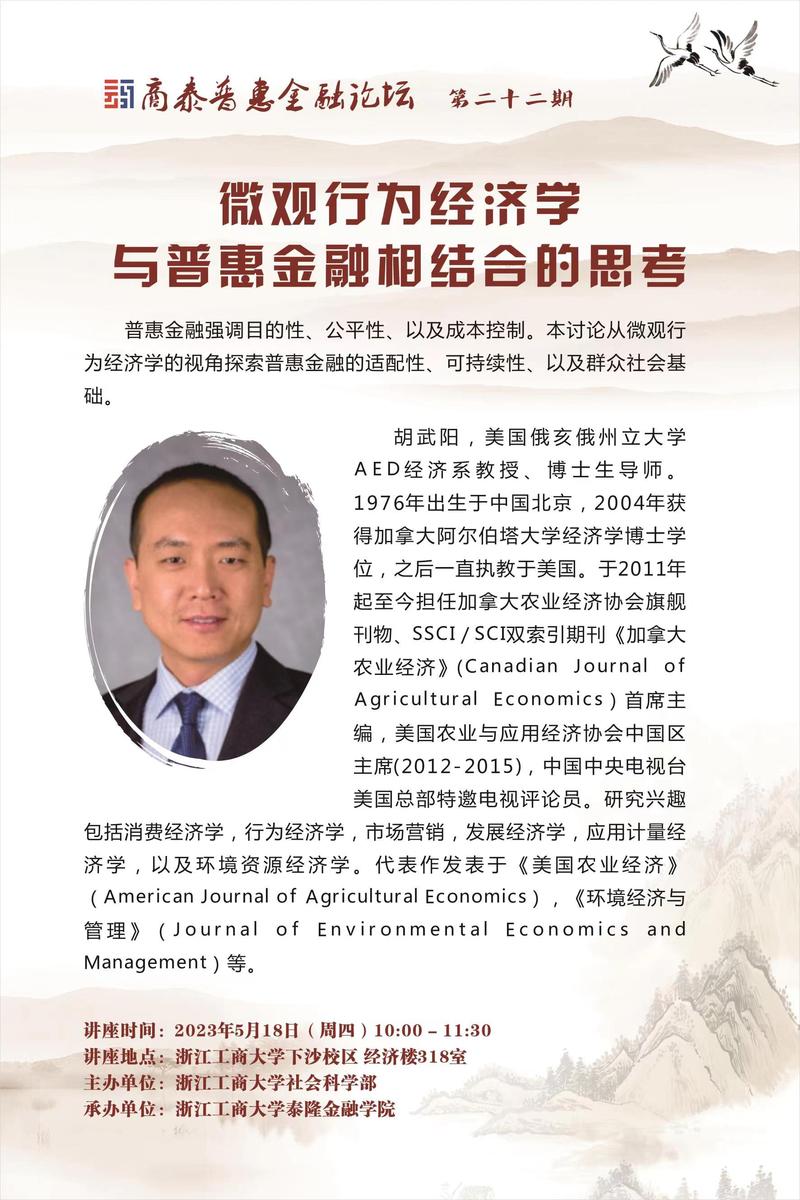 讲座预告|微观行为经济学与普惠金融相结合的思考