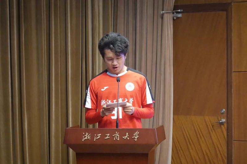 第六个展示的是文体之星候选人胡昊鸣。胡同学对所从事的文体活动具有浓厚的兴趣,并对其持续追求和专注,三年期间,他取得了许多成果:作为主力队员获得2021年浙江省青少年校园足球联赛大学男子组第七名;获2020年新生杯田径比赛男子跳远第二名;在博彩网站 第39届田径运动会男子跳远中获得第四名;作为主力队员在2020年博彩网站 新生杯男子足球亚军;作为主力队员在2021年博彩网站 新生杯八人制足球赛四强。