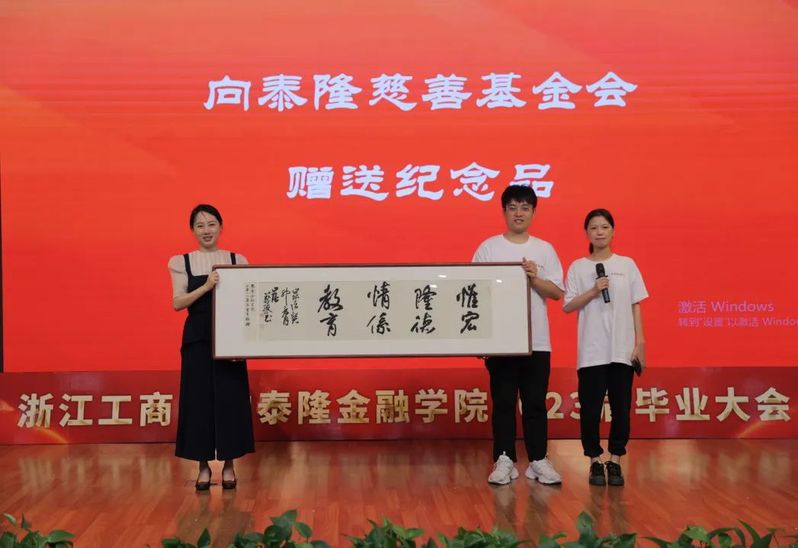毕业生为浙江泰隆慈善基金会赠送纪念品《惟宏隆德情系教育》