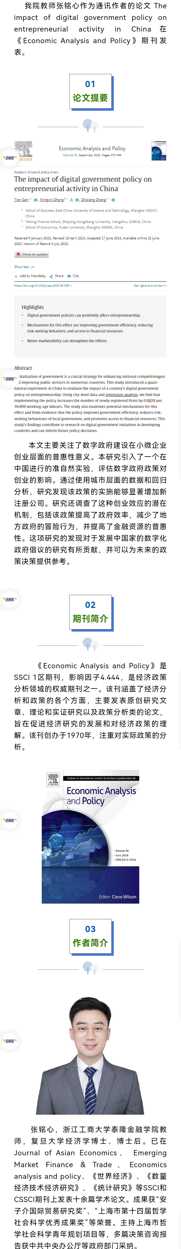科研动态 | 博彩网站 教师张铭心在《Economic Analysis and Policy》期刊发表论文