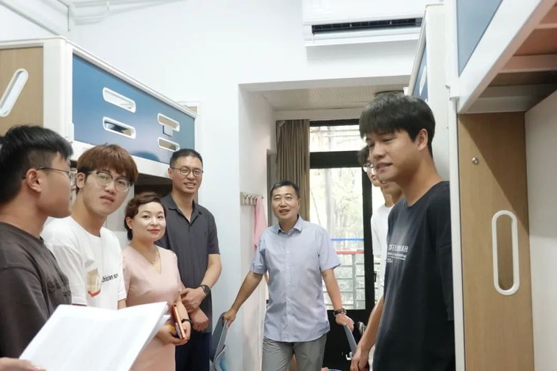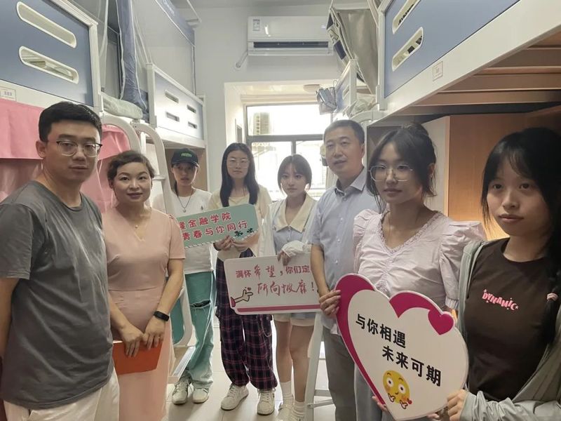 下午三点,学院院长马丹老师,书记慕兴宏老师,副院长倪禾老师,泰隆培训学校沈莹老师,副书记姜兵老师,院长助理傅利福老师,普惠金融2301班班主任卞咏老师,普惠金融2302班班主任张秦老师,普惠金融2303班班主任张铭心老师,学院教务秘书朱竹青老师,学院学办主管、2023级辅导员王寿铭老师,各班班助分别走访男女生寝室,与新生进行了亲切交流。