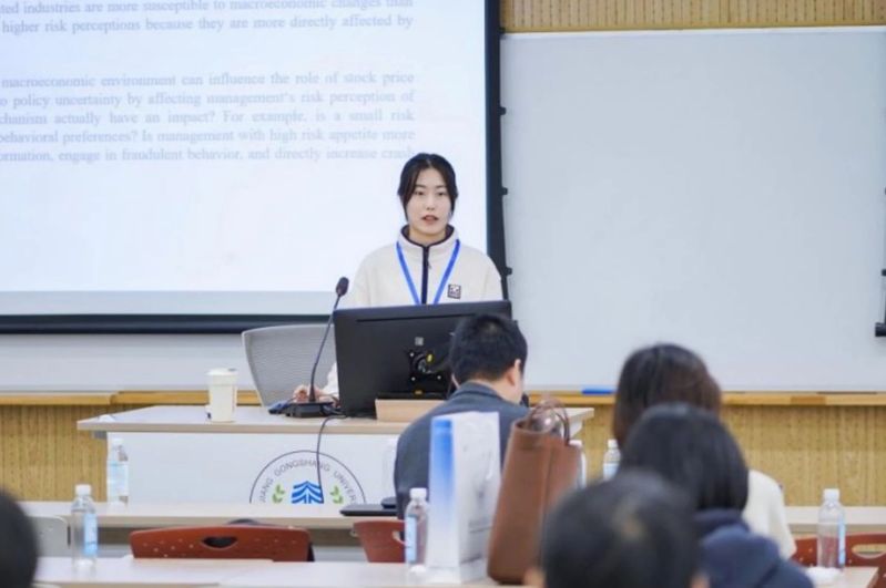 分论坛“数字金融和金融科技(二)”由浙江大学黄英教授主持,邰立宇、王逸智、任美旭、成雨欣、黄杰分别做题为“基于改进的Hist模型预测上市公司信用风险”、“Enhancing Exchange Rates Forecasting: Leveraging Long Short-term Memory with Technical Indicators”、“‘守旧’还是‘创新’:传统宗族文化与银行数字化转型”、“数字金融与经济增长研究——基于三要素增长核算方程”、“数字金融、信息不对称与企业劳动投资效率”5场报告。