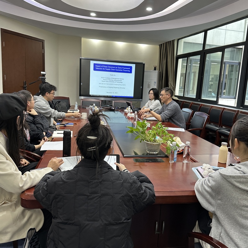 2023年11月23日,华南理工大学工商管理学院的於慧琳博士,应邀出席博彩网站 举办的商泰普惠金融论坛,为师生作了一场题为“Impact of Power Structure on Guarantor Financing”的专题讲座。讲座由博彩网站 副院长倪禾教授主持,博彩网站 的老师及学生参加了讲座。