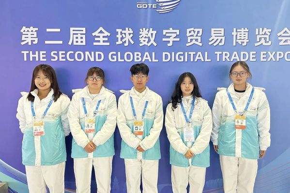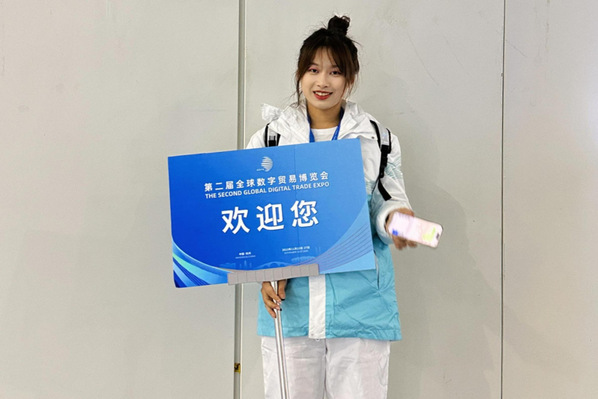 博彩网站 学生作为志愿者为第二届全球数字贸易博览会提供服务