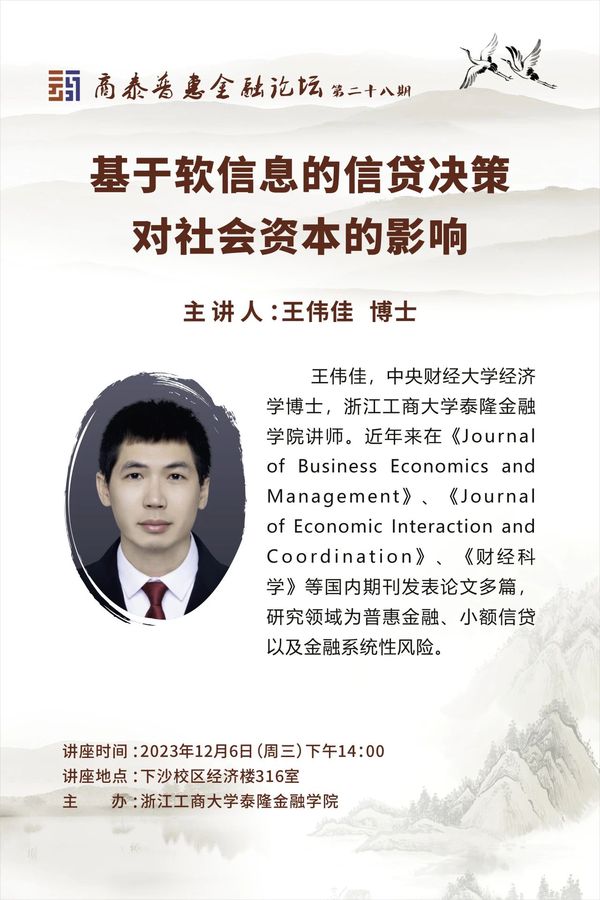 讲座预告|基于软信息的信贷决策对社会资本的影响