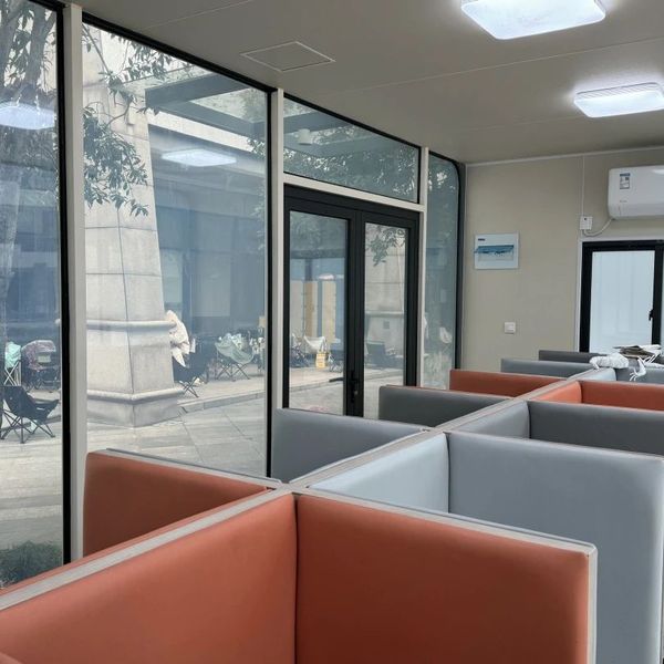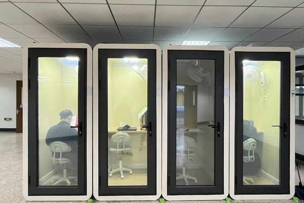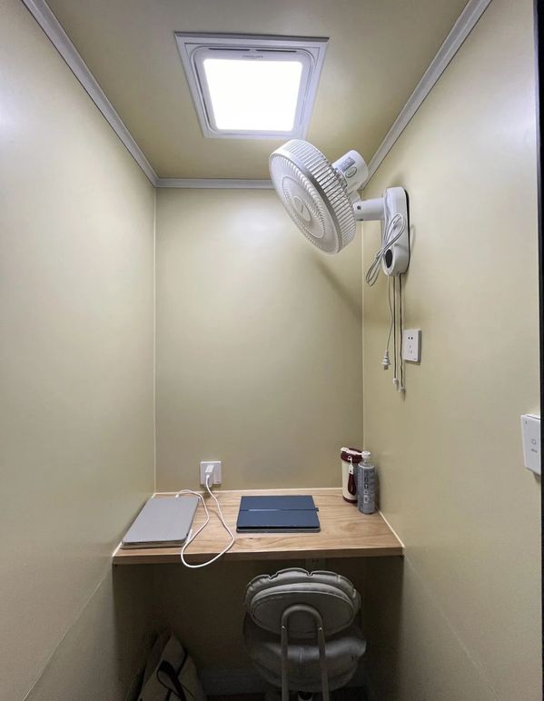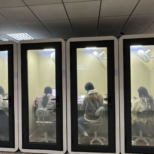 独立的空间,配有电扇、可调节的座椅、四个充电插座、可换气装置,隔绝外界影响,专注于自身。