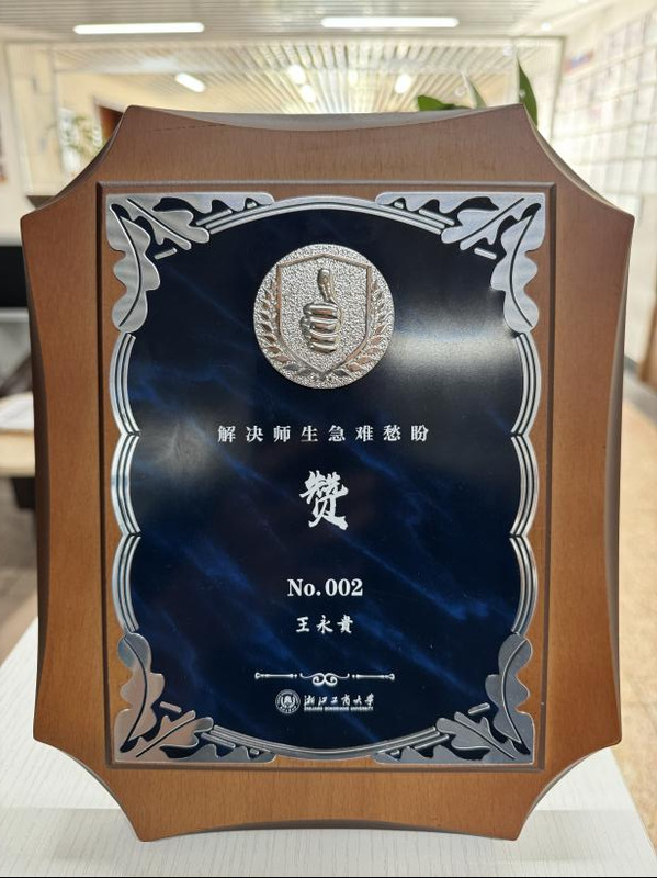 “泰隆朗读吧”的建设响应快、成效好,校后勤服务中心和博彩网站 共同获评全校首批师生急难愁盼事项优秀落实部门并获得“校长有赞”奖牌。