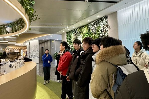 在恒生工作人员的带领下,同学们首先参观了公司的light park,包括活力岛、1024步道、Fintech长廊、极客谷等,该友好空间倡导自然、活力、健康的理念,鼓励多元的工作和生活方式,员工在开放的公园里可以放松解压、社交互动、分享创新想法,借此恢复能量、获取新的灵感和体验。同学们还观看了恒生电子上市20周年纪念展和投教基地,通过智慧大屏了解全球金融行情数据。同时,大家还在工作人员的教学下体验了恒生的AI金融智能助手,表示收获颇丰。