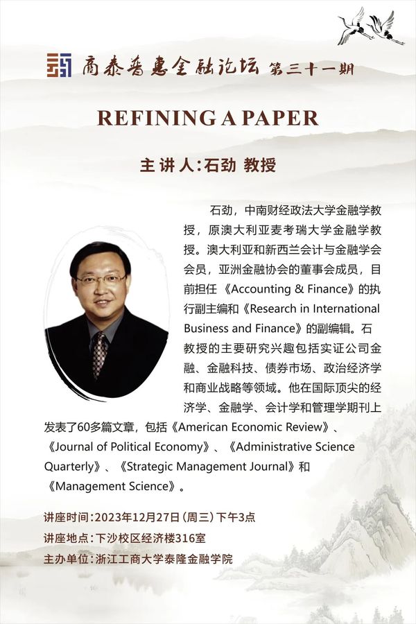 讲座预告|Refining a Paper
