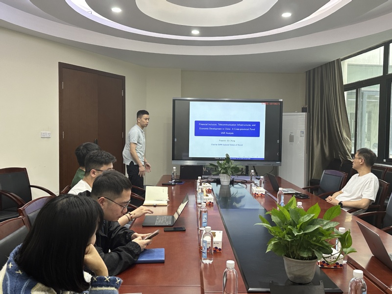 张秦老师首先汇报了最新的工作论文, 文章通过调查2011年至2020年,中国31个省的普惠金融、电信基础设施和经济增长之间的时间动态和三向性影响。采用了面板VAR模型捕获相互依赖性和动态模式,该模型评估了一个正交激波从一个变量到整个系统随时间变化的轨迹。实证结果表明:第一,提升信息和通信技术基础设施水平对普惠金融和经济增长都有积极的影响;第二,更大程度的普惠金融也会促进信息和通信技术提升和经济增长;第三,这些增长刺激在短期内较为明显,长期并不显著,这表明影响系统的冲击是暂时性的;第四,区域异质性显示,财政发展水平较低的西部省份从ICT基础设施中受益更多,而财政发展水平较高的东部省份从普惠金融发展中受益更多。