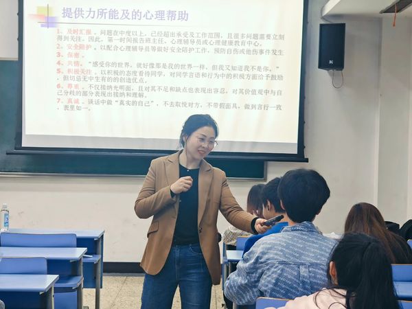 李瑜老师为心理委员和寝室长们开展了大学生心理健康培训,介绍了心理委员和寝室长们开展心理工作的特点和总体任务——预防同学们产生心理问题和对已有心理问题的同学协助干预,同时也明确了心理委员工作的界限。随后,李老师为我们讲述了可能产生心理危机的表现和如何识别,并通过数个案例表明了产生心理问题后及时进行疏导和积极治疗的重要性。最后,李老师鼓励心理委员和寝室长们积极开展心理活动并及时反映问题。