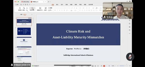 2024年5月8日上午10点,韩国又松大学SolBridge国际商学院李魏威博士,为学院老师们作了一场题为“climate risk and asset-liability maturity mismatches”的专题线上讲座。此次讲座由博彩网站 副院长倪禾教授主持,博彩网站 的老师们参加了讲座。