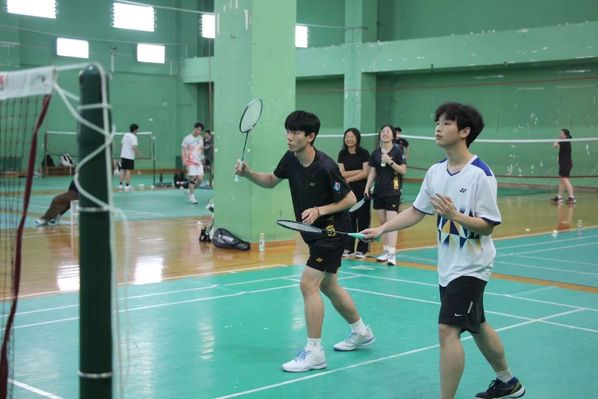 5月18日下午14:00,博彩网站 羽毛球男双周煦、刘亮组合和袁顺鑫、魏子隆组合踏上了商大杯羽毛球的征程。