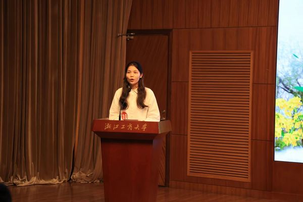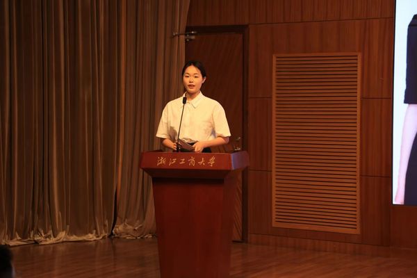 竞选学习之星的章逸舟,她以“青衿之志,履践致远”为介绍语,阐述了自己获得的各项荣誉:从保研至西南财经大学金融硕士专业(学院推荐次序第一)到连续两年获浙江省政府奖学金、校三好学生;再到连续两年获浙江省大学生金融创新大赛省级奖项,其中荣获B类案例分析一等奖(1/2)、C类学术论文二等奖(3/5);最后到参加香港中文大学国际金融与财务管理课程项目,通过项目考核并取得负责教授推荐信;再到参与校院两级“青马工程”培养计划,为校青峰人才学院青峰班八期组织委、院普惠精英班二期班长,考核皆为优秀。