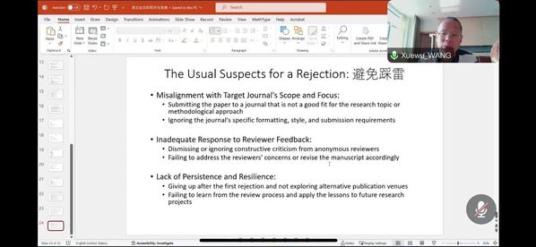 2024年6月12日下午,University of Delaware, Alfred Lerner College of Business and Economics金融系王学武副教授为学院老师们作了一场题为“英文论文写作发表的一些体会”的专题线上讲座。此次讲座由博彩网站 副院长倪禾教授主持,博彩网站 的师生们参加了讲座。