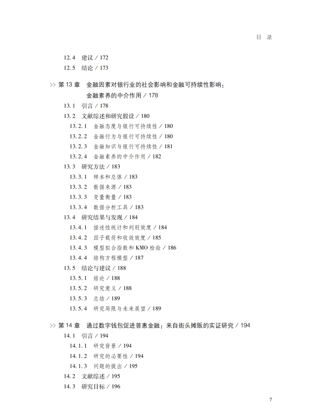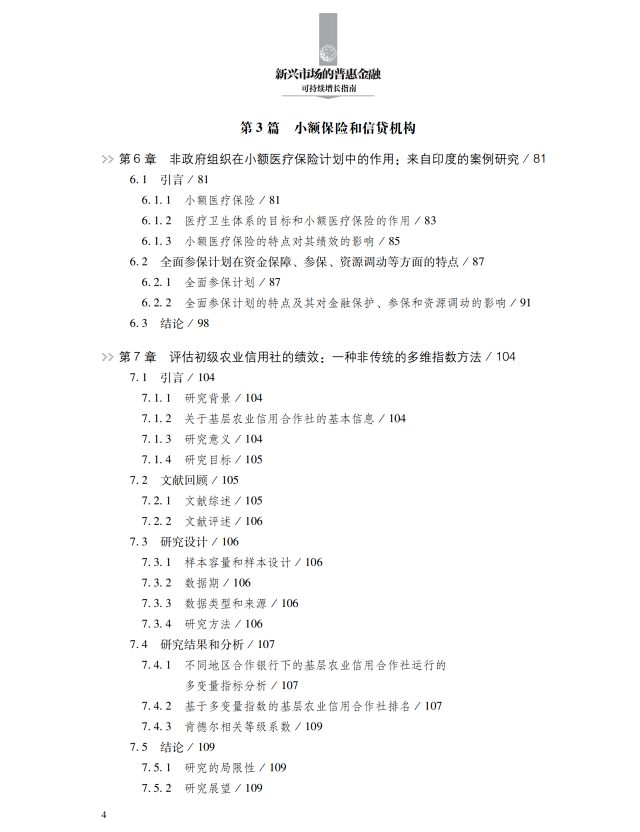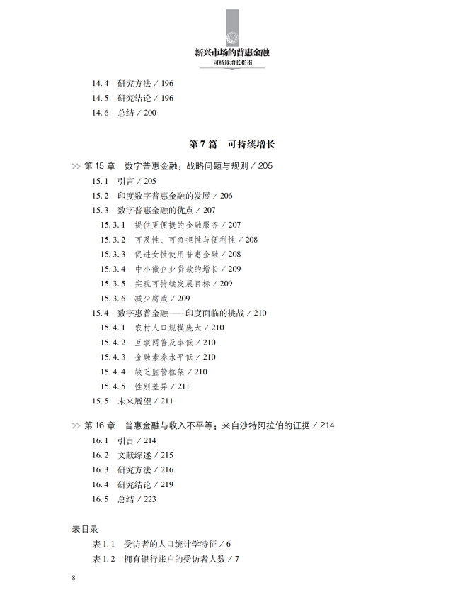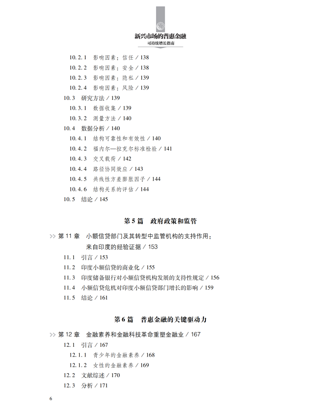 本书从理论、实证、案例研究等多重视角,深入探讨普惠金融的发展及其对新兴经济体可持续增长的深远贡献。首先,本书详细解析了普惠金融在全球的实践,展示了多样化的普惠金融产品和服务以及提供这些产品和服务的金融机构。其次,本书阐述政府政策和监管职能在普惠金融发展中的支持作用,揭示了推广普惠金融应用的关键驱动力。最后,本书聚焦于普惠金融如何实现可持续发展,剖析了在这一过程中普惠金融所面临的各种挑战和解决方案。