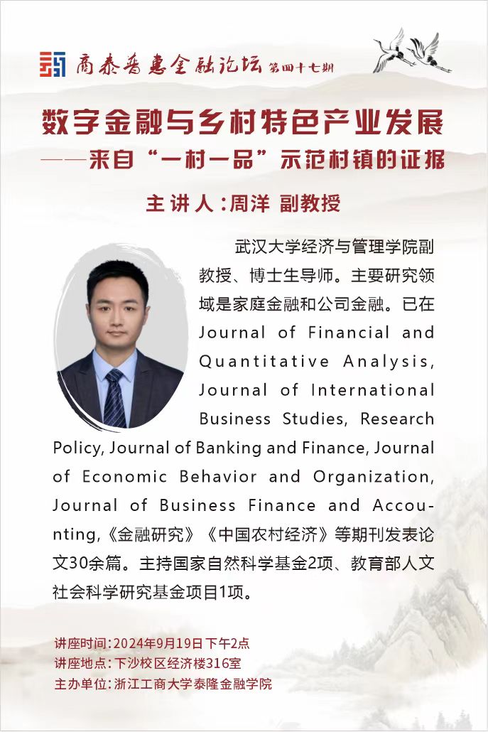 讲座预告|数字金融与乡村特色产业发展——来自“一村一品”示范村镇的证据