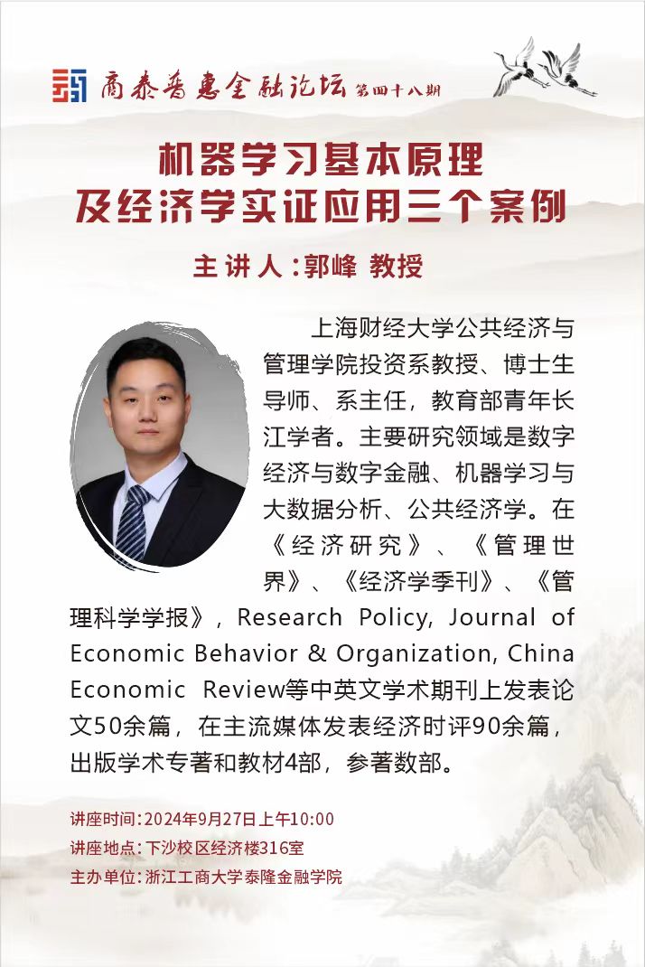讲座预告|机器学习基本原理及经济学实证应用三个案例