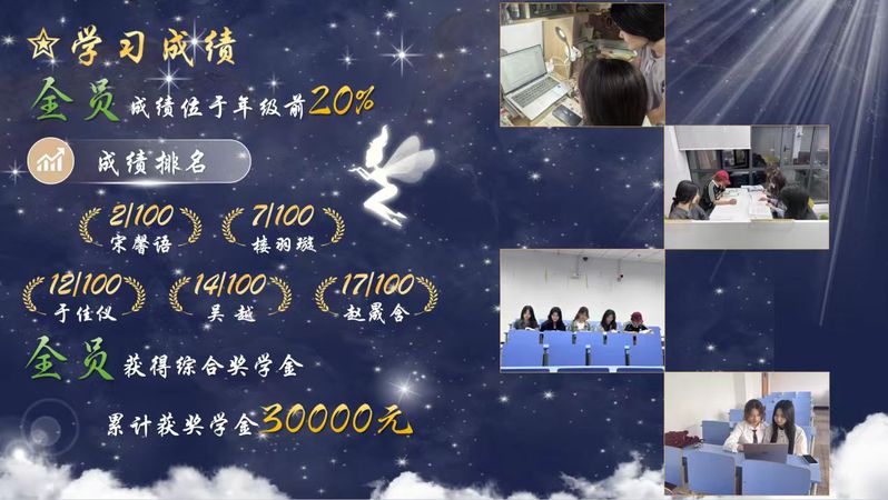 她们的学习成绩斐然,成绩均位于年级前20%。成员中,宋馨语排名第2,楼羽璇第7,于佳仪第12,吴越第14,赵晟含第17。凭借优异成绩,寝室累计获综合奖学金超30000元,彰显了寝室扎实的学业基础与卓越的学术追求,为各项竞赛荣誉奠定了坚实的知识储备。