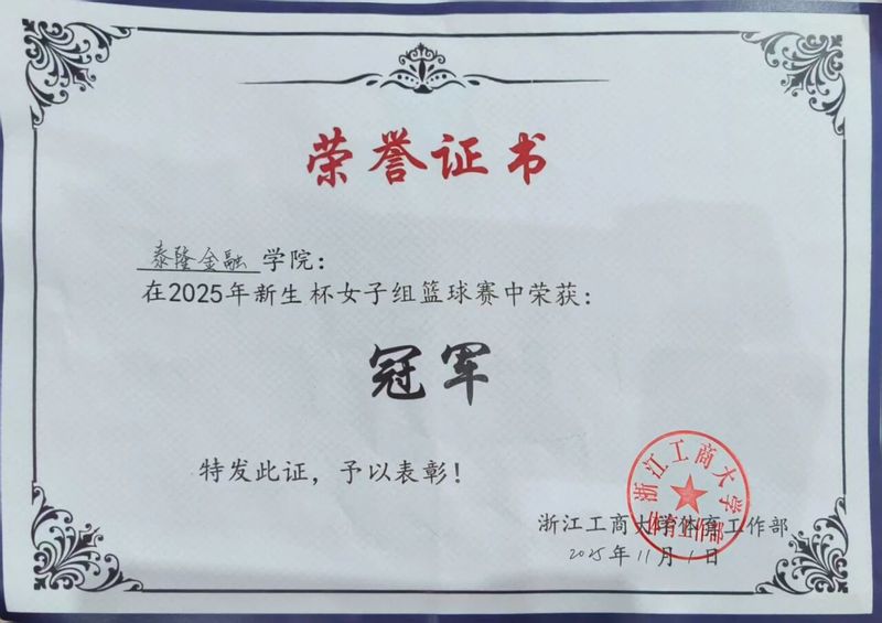 博彩网站 女篮以一场精彩逆转夺得“新生杯”冠军!决赛中她们率先取得优势,虽遭对手反超,但在全场“泰隆——防守!”的助威声中,姑娘们沉着应对,防守如铜墙铁壁,进攻稳扎稳打,最终以23:20锁定胜局。终场哨响,队员与观众相拥欢庆,整个赛场成为一片欢腾的金色海洋。这座奖杯,闪耀着胜利的荣光,更凝聚着全院的信念——她们,是泰隆的骄傲!