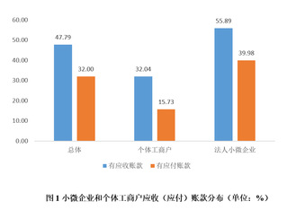 调查发现,小微企业在资金链方面面临着三大困境:(1)小微企业的应收账款与应付账款存在错配,表现为有应收账款的小微企业比例远高于有应付账款的小微企业比例,且面临应收账款逾期的小微企业比例远高于应付账款逾期的小微企业比例;(2)小微企业应收账款逾期时间较长,超三成小微企业的逾期时间在1年以上;(3)小微企业的应收账款逾期问题在经济下行时可能引发系统性风险。资金链困境对小微企业来说是涉及到生死存亡的问题,尤其是经济下行时期,需要引起高度重视,通过多方协同解决问题,共同建设小微企业友好型营商环境。1.困境一:收入错配 如图1和图2所示,47.79%的小微企业和个体工商户有应收账款,32.00%的小微企业和个体工商户有应付账款;44.20%的小微企业和个体工商户经历过应收账款逾期,而只有13.35%的小微企业和个体工商户经历过应付账款逾期。可见,小微企业的应收账款与应付账款存着错配,具体表现为有应收账款的小微企业和个体工商户比例远高于有应付账款的小微企业和个体工商户比例,且面临应收账款逾期的小微企业和个体工商户比例远高于应付账款逾期的小微企业和个体工商户比例。因此,小微企业会经常面临流动性资金需